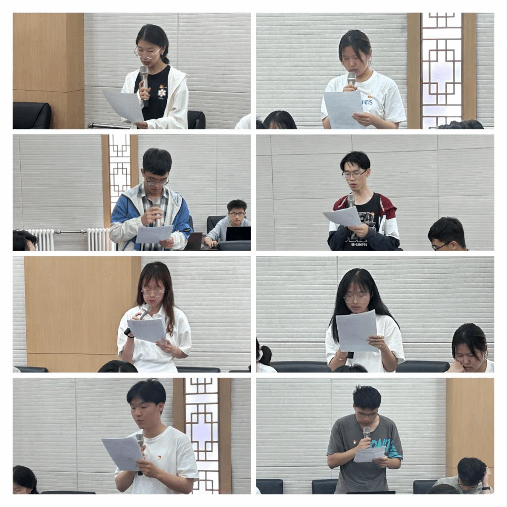 2023年6月7日,我院本科生辅导员纵向党支部在开发区校区信息楼302会议室召开党员大会,审议张舒涵等16名同志拟转为中共正式党员的情况。党支部书记李一鸣同志、副书记王娣同志、党支部纪律委员李晖丹同志等12名正式党员参会,全体学生预备党员参会,本次大会由李一鸣同志主持。