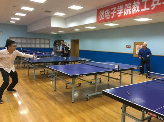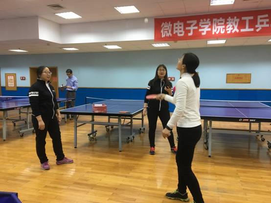 11月15日下午15:30分,首届微电子学院教工乒乓球趣味运动会在主校区乒乓球馆拉开帷幕。运动会设置两项趣味比赛活动,一个是发球入箱,另一个是颠球比赛,男女分组比赛。之后又按照男女分了两个队,每队分两个小组,小组循环,每组出线两名,再进行交叉淘汰,决出前三名。特别邀请了工会主席冯振业参与了我们的活动,给我们的活动增添了力量。活动一开始,就笑点不断,乒乓球馆充满了充满了欢声笑语。通过此次活动,不仅增进了教工之间的友谊,而且愉悦了身心,缓解了教工紧张的工作压力。