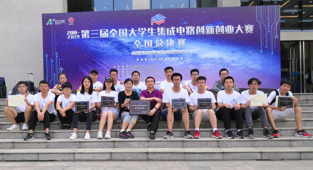 我校有13支队伍晋级全国总决赛,共涉及6个杯赛,获得一等奖2项,二等奖5项,三等奖2项,优秀奖4项。我校教师王开宇、王飞龙、高新岩、于成、陈景、刘胜蓝、商云晶、巢明、金秀梅、骆英民、柳阳、常玉春和申人升分别获得“优秀指导教师奖”;因我校微电子学院在该项赛事中组织有力、参赛踊跃、作品优秀,特授予我校“优秀组织奖”。