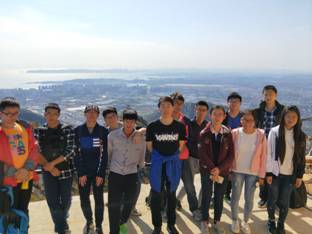 距中国共产党第十九次全国代表大会召开仅剩两天。此前,国务院办公厅出台《关于强化学校体育促进学生身心健康全面发展的意见》。为了积极响应和号召相关政策,喜迎十九大,微电1601班在10月14日开展了一次“爬山健身行”活动。我们来到坐落于大连市金州新区城东约五公里,主峰海拔663.1米,面积23.79平方公里的大黑山。大黑山被誉为辽南第一山,在我校开发区校区亦能一睹它的风采。