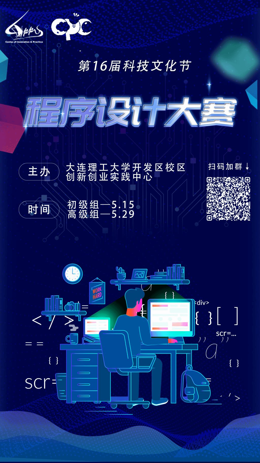 大连理工大学开发区校区科技文化节是开发区校区每年一度的大型科创竞赛,以学以致用、开拓创新为主题,提高校区学生科技创新能力、增强校区科创氛围为目的,各类不同方向的比赛为手段,达到以赛促教,以赛促创,赛教融合的宗旨。开发区校区将于4月-5月举办第十六届科技文化节。本届大赛共有六项不同技术方向的赛事,具体如下: