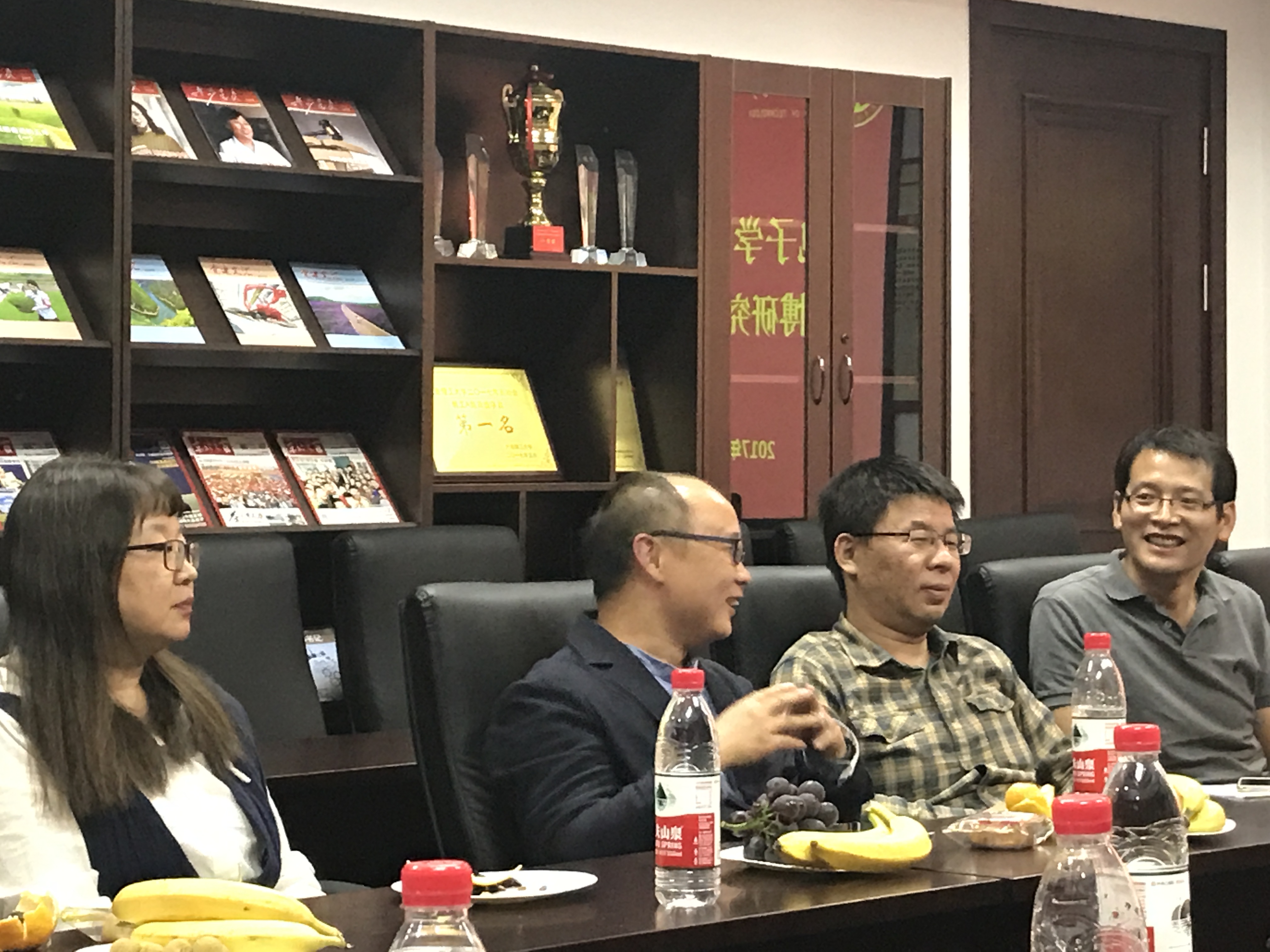 然后,同学们依次自我介绍并提出一些问题,如:怎么处理好上课、科研与实验的关系、出国交流的机会有哪些并需要注意什么、如何与导师和师兄师姐们沟通、专业毕业后的就业方向和企业有哪些等等。老师们耐心并且详细地一一解答,期间老师与同学们沟通自如,气氛活跃,笑声不断。
