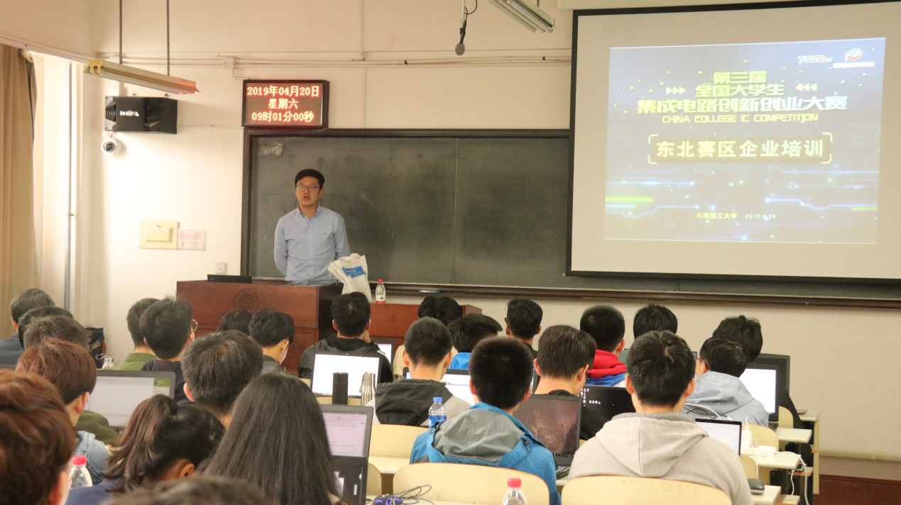 第一届辽宁省大学生集成电路创新创业大赛暨第三届全国大学生集成电路创新创业大赛东北赛区赛前企业培训于2019年4月20日在大连理工大学凌水校区综合1号教学楼如期举行。此次培训由国家工业和信息化部人才交流中心主办,大连理工大学微电子学院承办,分别邀请美国国家仪器NI公司和阿里巴巴旗下的平头哥半导体有限公司的资深培训师,针对第三届全国大学生集成电路创新创业大赛的对应杯赛题目进行解析和实操训练。