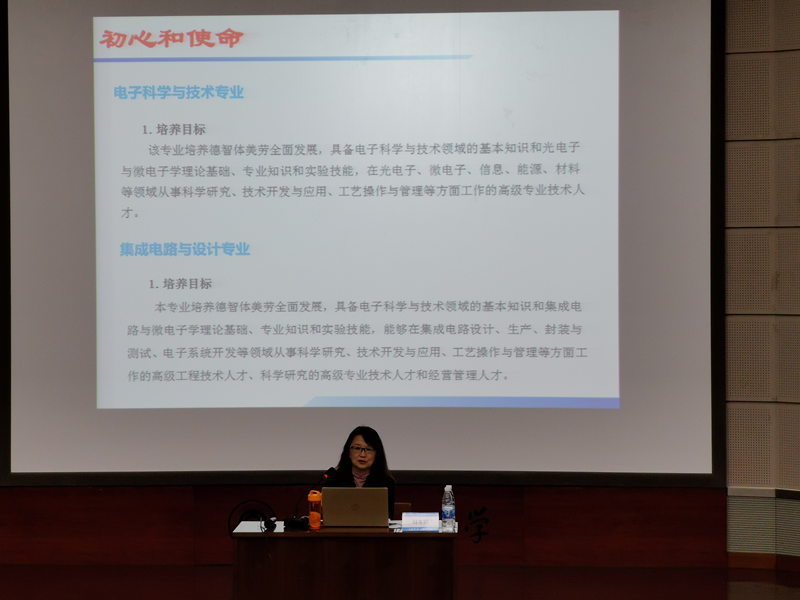 2019年10月30日晚,微电子学院党总支书记付冬娟老师,在开发区图书馆报告厅,为大一学生上了精彩的一课,帮助大一新生找准大学奋斗目标,摆脱进入大学后毫无目标的迷茫,端正学习态度。