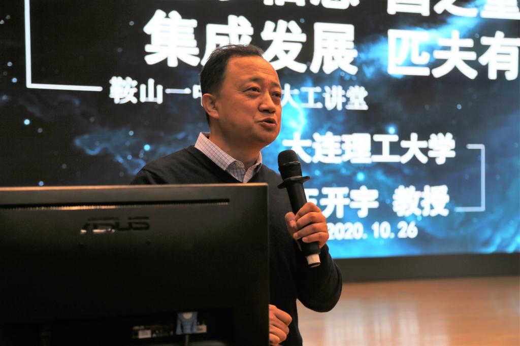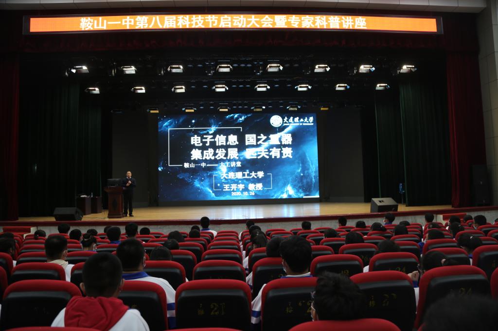 2020年10月26日,电工电子国家级实验教学示范中心、电工电子国家级虚拟仿真实验教学中心主任,电子信息与电气工程学部王开宇教授来到我院对口负责招生单位辽宁省鞍山市第一中学开展“大工讲堂”,为600余名高中生带来“电子信息 国之重器 集成发展 匹夫有责”主题报告,现场气氛热烈。