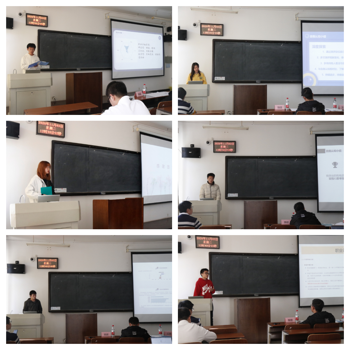 本次答辩共有6位选手,他们以“规划成就未来”为主题,对个人职业生涯规划进行现场汇报展示。参赛选手从自我认知、职业认知、生涯规划、动态调整等方面进行个人深度分析,充分展现了我们选手“追求卓越、兴校强国”的理念与决心。