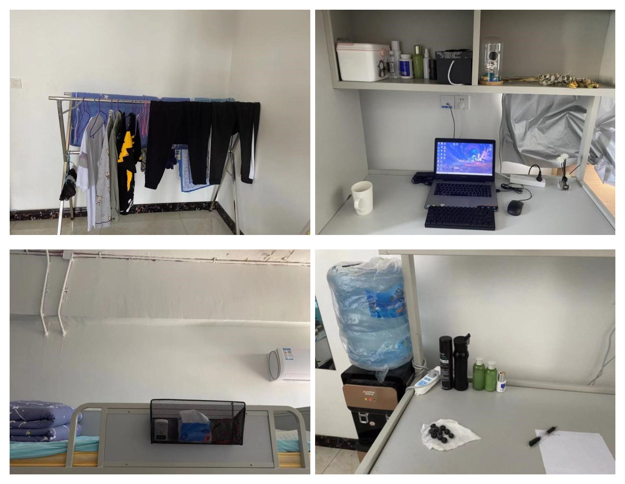 经检查,学院宿舍总体状况干净整洁,床铺、地面以及桌面上的物品摆放都比较整齐,给人一种温馨怡人的感觉,以下是对部分优秀宿舍照片的展示:
