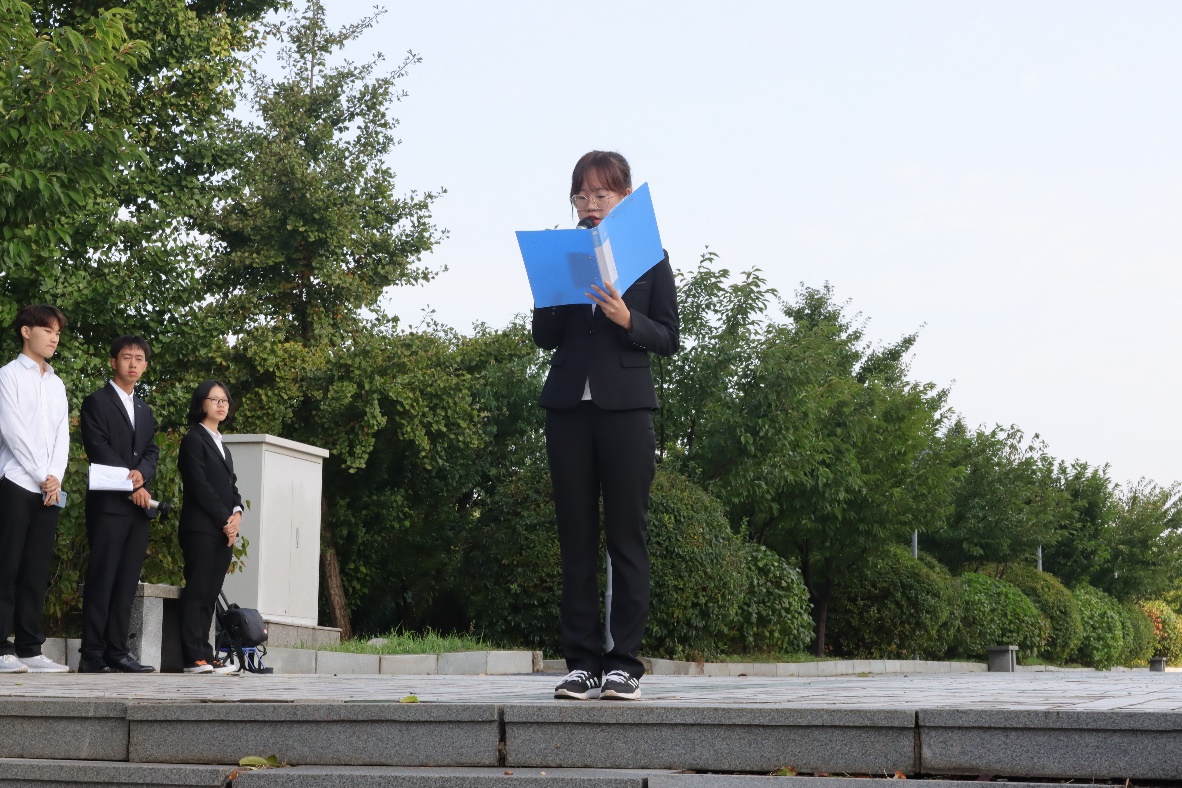 秋风舞国旗,晨曦庆华诞,为庆祝新中国成立七十二周年,大连理工大学开发区校区于10月1日在书韵广场举行了隆重的升旗仪式。软件学院、国际信息与软件学院以及微电子学院学生代表出席并在国旗下进行主题演讲。