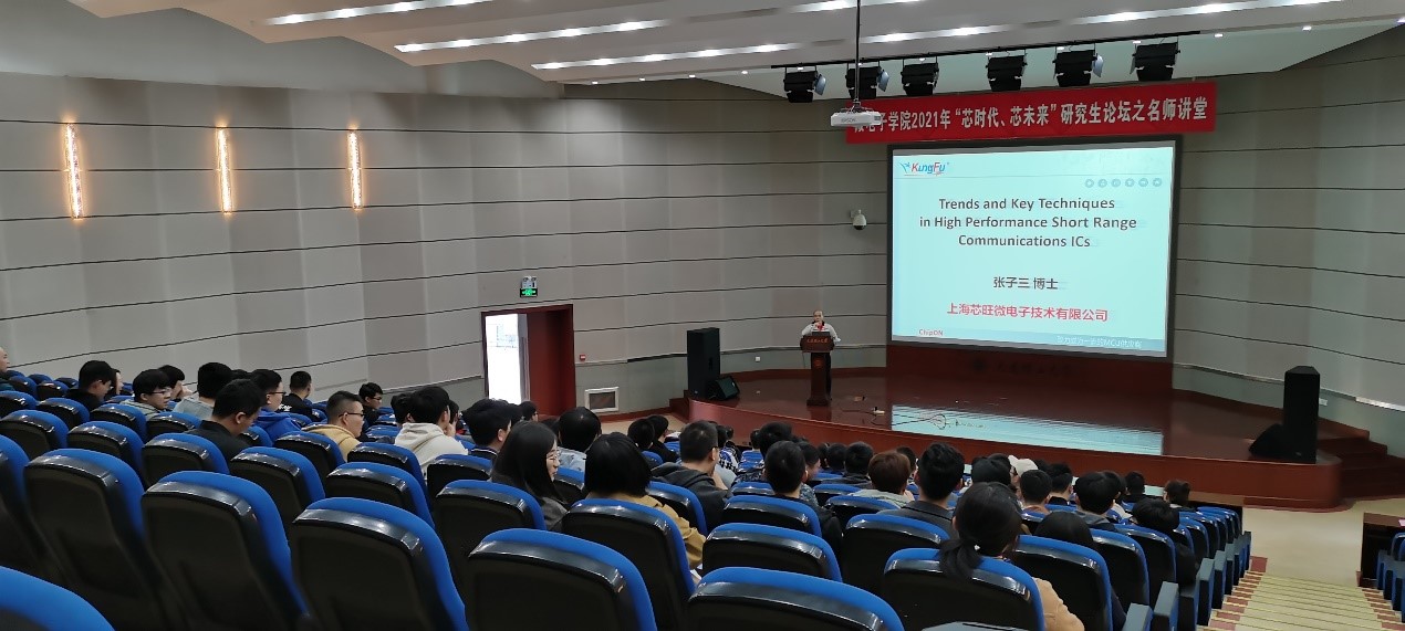 上海芯旺微电子首席科学家张子三,带来《Trends and Key Techniques in High Performance Low Power Wireless Transceivers》的学术交流和经验分享。一直以来,低功耗和高性能对于无线收发器来说是一个严峻的矛盾点。张子三专家首先介绍了无线收发器的基本工作原理,并阐述自己对于高性能低功耗的无线收发器的未来发展趋势以及关键技术的理解,然后与现场提问的硕士研究生热情互动,解答同学们的疑问。