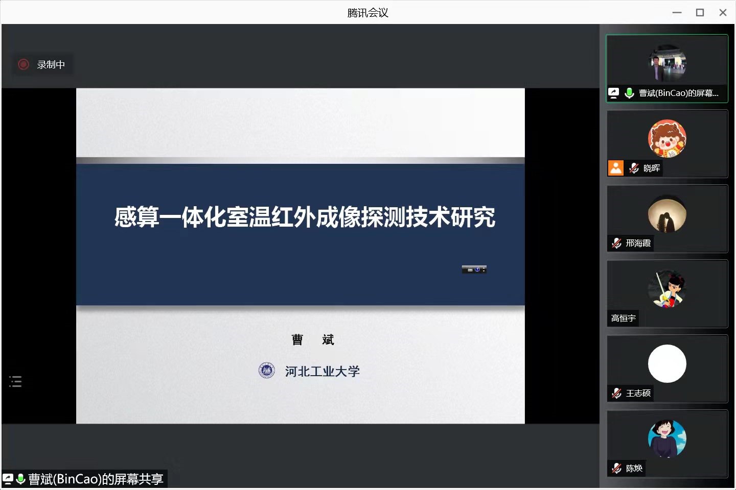 河北工业大学曹斌教授为大家带来《感算一体化室温红外成像探测技术研究》的学术报告。曹斌教授首先介绍了感算一体化室温红外成像探测技术针对无人驾驶、安防监控等领域红外探测芯片功耗高、智能化程度低的共性问题。随后解答了红外探测器读出电路芯片的研发,红外感知的新型神经形态信号流处理算法的开发,以及相关硬件设计的专业问题。