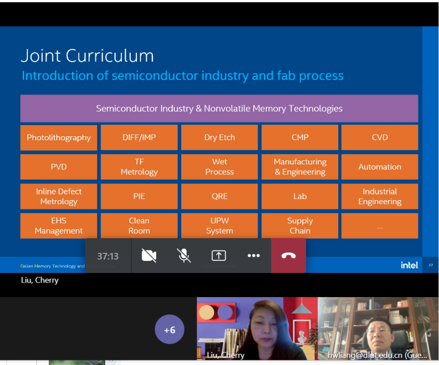 4月22日,微电子学院同英特尔半导体存储技术(大连)有限公司举行线上座谈会,双方在前期合作的基础上,就理论课程共建、实验课程共建、认知实习、项目合作、研究生联合培养等方面,展开讨论。微电子学院党委书记付冬娟,副书记副院长李一鸣,副院长梁红伟、常玉春、申人升,专业负责人李晓干,英特尔大连公司企业社会责任及教育项目、战略发展部组织发展、技术指导委员会等部门相关负责人参与了研讨。