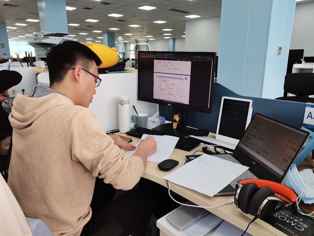 专心科研是研究生群体的首要任务,即使疫情来临,研究生们积极投身科研的热情也丝毫不减。常玉春导师的课题组近期有相关方向的科研任务,组内的同学们或严肃沉着地绘制电路,或三两结对探讨难题,如火如荼的科研氛围持续地在全组上下围绕。