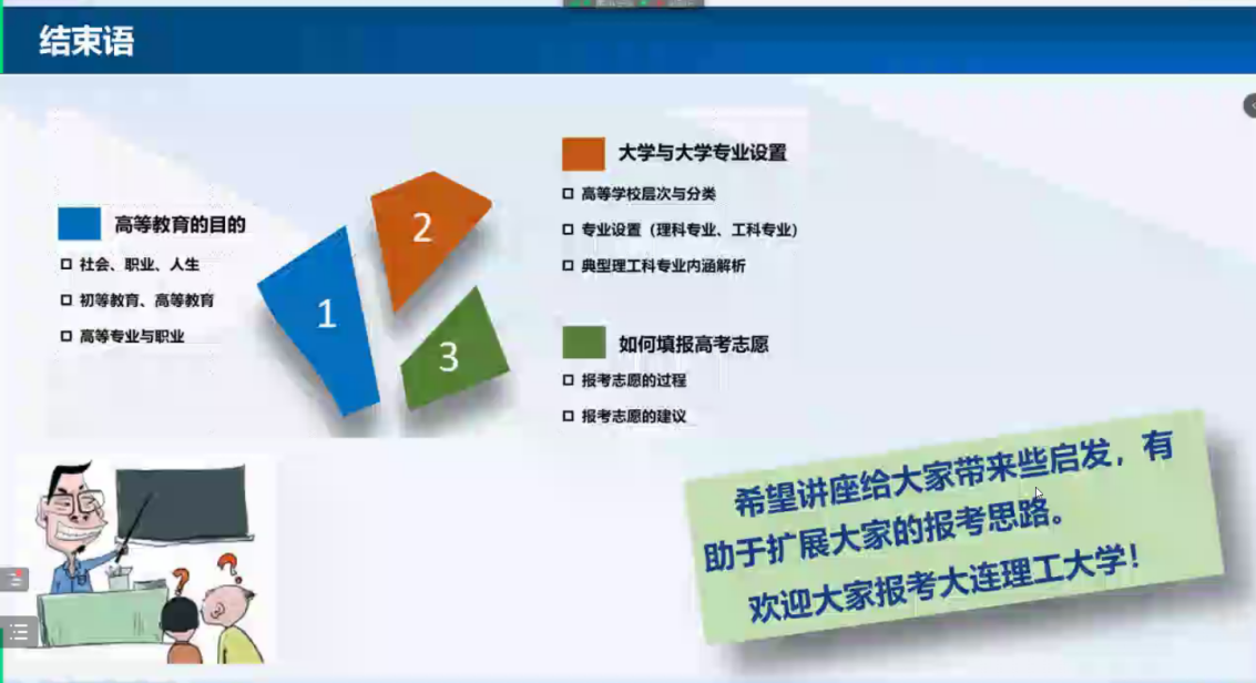 此次讲座通过线上方式开展,进一步提升我校在甘肃区域的影响力,为吸引优质生源,促进高校和中学人才对接与交流沟通打造了平台。祝愿更多考生金榜题名,不负十二年寒窗苦读!合理选择专业,为国家繁荣昌盛贡献青春力量。