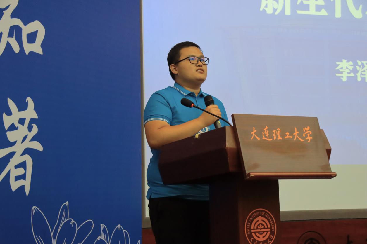新生代表2022级硕士研究生李泽豪同学发言,李泽豪同学十分感谢大工对自己的培养,让他从2018级本科生保研到自己的学院,成长为一名2022级的研究生。在人生的新起点,李泽豪同学分享了三点希望与大家共勉:一是要找准目标,制定计划,锲而不舍;二是在锻炼中成长,施展自己的才华;三是希望大家珍视时间,战胜拖延。