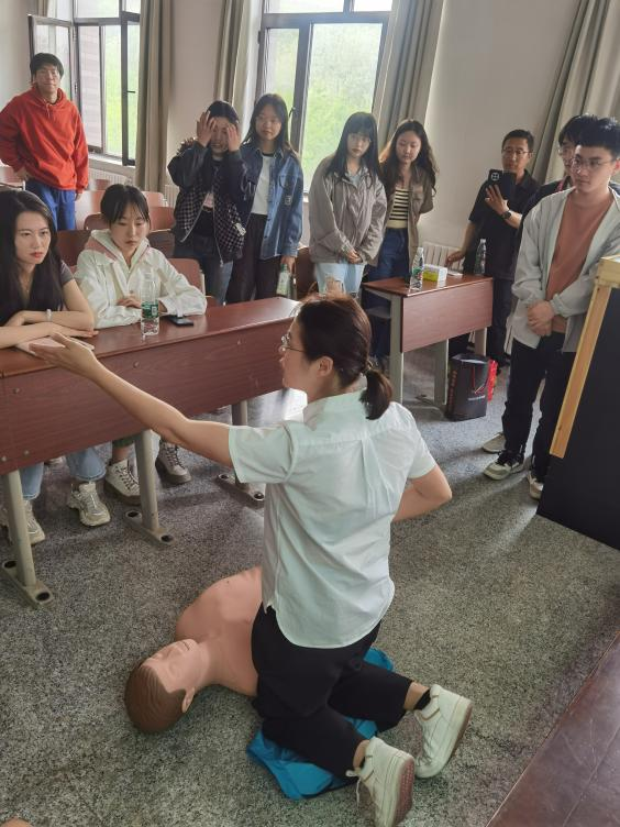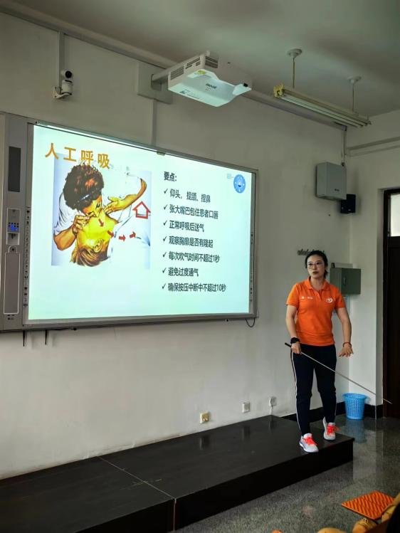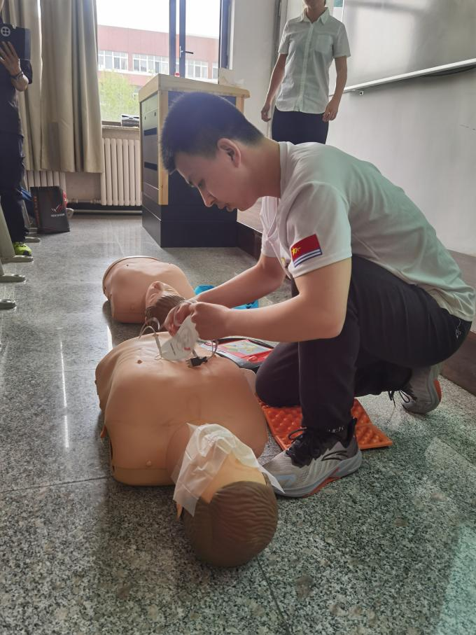 2023年5月11日下午,微电子实验教学中心主任申人升邀请了大连市第一反应橙救中心的导师曲健凤女士在教学楼A218,为研究生新生上了一堂急救课程。主要介绍了相关急救基础知识,阐释了什么是黄金4分钟,拨打120电话与接线员对话的注意事项,以及急救时人工呼吸的技术要领。由曲老师助理进行了人工呼吸实操,并讲解了AED(自动体外除颤器)的使用方法。