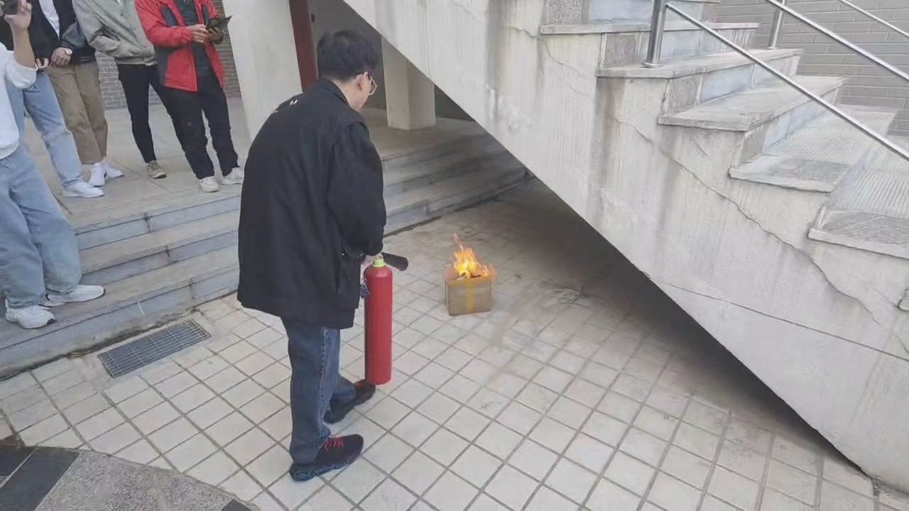 紧接着,在骆英民老师的带领下,学院学科实验室组织进行了应急逃生演练。骆老师带领同学们到实验室外,现场讲解了灭火器的使用方法和注意事项,并让同学们实际进行了灭火器的使用训练。