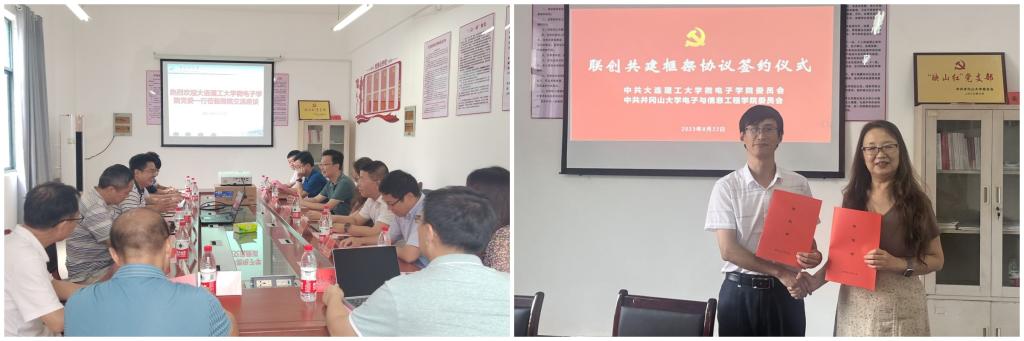 为充分利用井冈山红色育人资源,搭建党建联创共建平台,学院党委与井冈山大学电子与信息工程学院党委开展交流活动。座谈会上,付冬娟介绍了学院党建工作和特色经验做法,梁红伟介绍了学院有关学科建设、人才培养等情况。井冈山大学电子信息与工程学院郭晨院长介绍了该学院的建设情况。随后,双方就党建结对平台搭建、党建资源分享、党建活动开展等方面交换了意见和做法,为下一步党建结对共建工作的推进奠定了基础。最后,双方党委签订了联创共建框架协议。