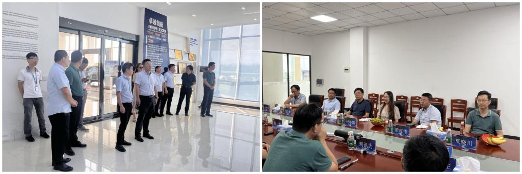 在遂川县的奥海科技有限公司,一行人参观了企业智慧展厅和生产车间,详细了解了奥海科技的发展历程和业务领域,与企业领导和科研团队座谈。双方就技术创新、科研成果转化及校企等方面深入交流,表达了在多层次开展合作的意愿。梁红伟也表示将对接企业所需,充分发挥校企两方面的资源优势和科研优势,实现联合攻关、协作共赢。