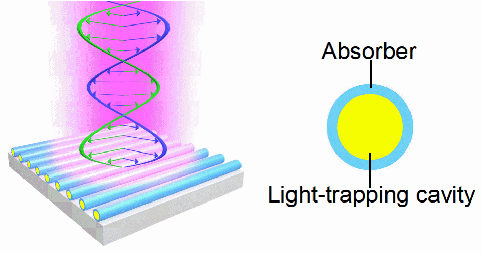 近日,国际高水平期刊《The Journal of Physical Chemistry Letters》(自然指数期刊)在线发表了学院杨一鸣教授课题组的研究成果《Triple-Enhanced Absorption Anisotropy in Arrayed Core-Shell Nanowire Design》。论文第一作者为我院硕士研究生刘子敏,共同第一作者为我院博士研究生唐华意。论文通讯作者为大连理工大学集成电路学院杨一鸣教授,学院徐姣老师为论文的共同通讯作者。 本项研究设计了一种具有核壳结构的卤素钙钛矿一维纳米线偏振光传感器。半导体纳米线受益于其各向异性的光吸收特性及高效的载流子传输通道,在亚微米级别超小型化偏振光传感器中具有潜在应用前景。然而,为达到较高的偏振灵敏度,纳米线的直径往往需缩减至几十纳米以下,显著增加了器件制备难度并降低光吸收效率。本文提出了一种平面核壳纳米线阵列结构,采用光敏材料作为薄壳层提高光吸收各项异性,并由间接带隙半导体作为核层形成光学谐振腔,再进一步利用阵列化光子结构放大其偏振光传感性能。通过引入全无机卤化物钙钛矿异质结构,阵列在无需减小纳米线直径的前提下实现了高达110.5的二向色性比。该结构具备高度实验可行性,为高灵敏度微型偏振光传感器提供了新的设计思路。