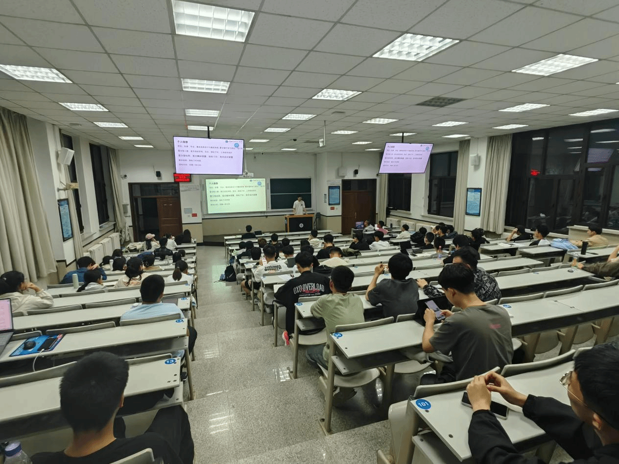 技术分享环节,我院EDA技术方向优秀学生代表带来专业解读。集成电路设计专业学长结合参与的省级创新项目,解析主流EDA工具链:“Synopsys的Design Compiler综合工具能实现时序优化30%,我们团队用它完成了一款8位MCU芯片的逻辑综合,面积利用率提升15%”;微电子专业学姐则聚焦开源EDA趋势,分享实践经验:“SkyWater PDK开源工艺库已支持130nm制程,我们基于KiCad和OpenLANE完成的CMOS反相器设计,通过了DRC(设计规则检查)和LVS(版图与 schematic一致性检查)”,干货满满的内容让现场同学专注记录。