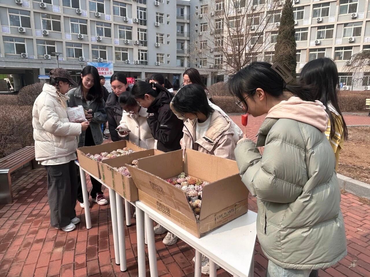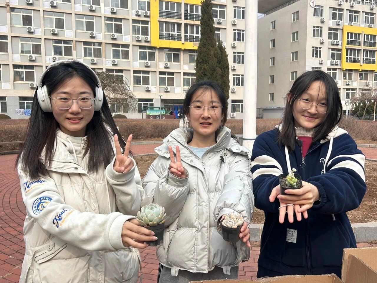 一盆盆萌态可掬的多肉植物被送到女生手中,象征着坚韧顽强的生命力量。这些小生命提醒学生们要像多肉一样,积蓄内心的力量,在学业和生活中茁壮成长。