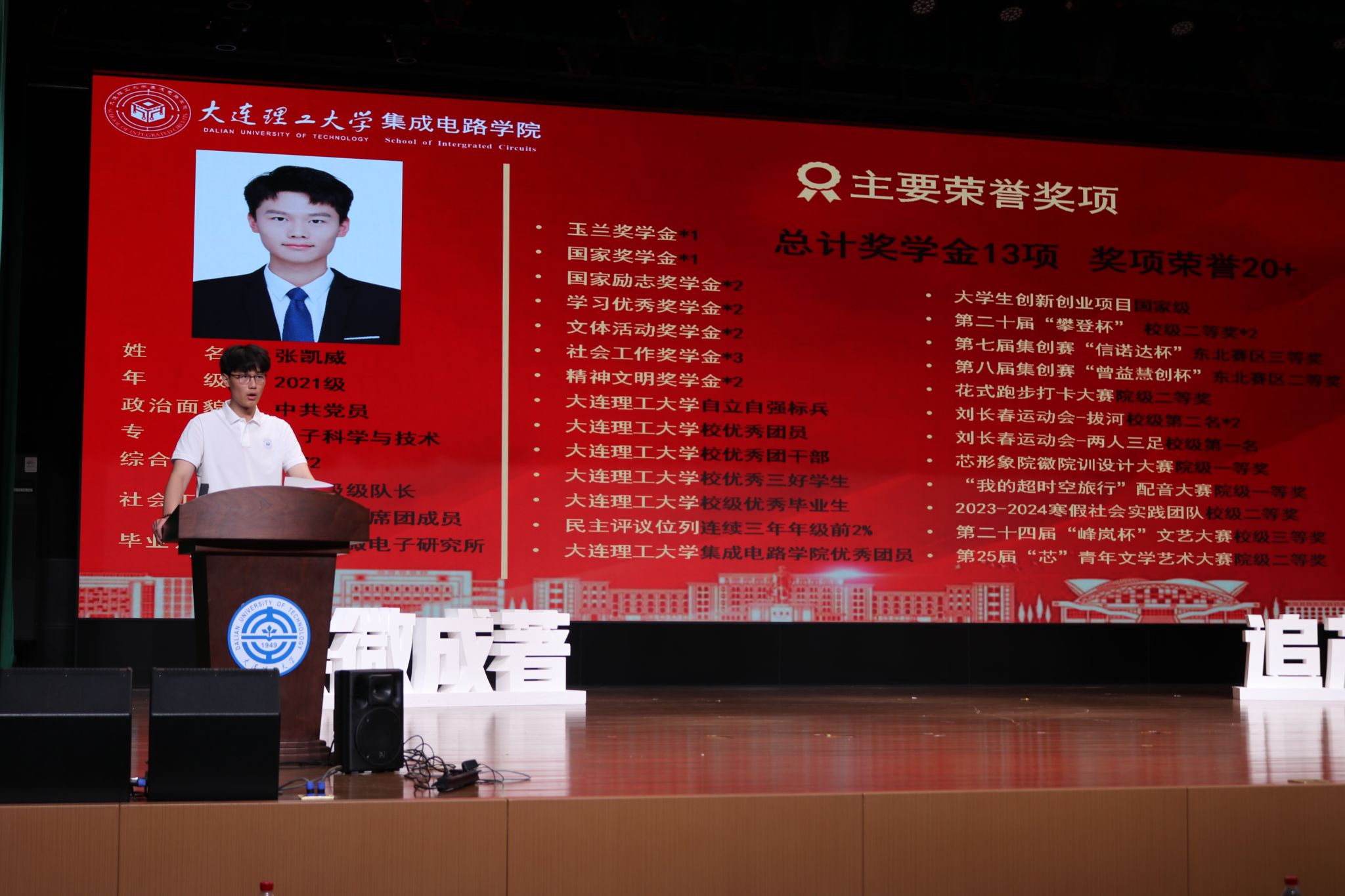 6月13日(周五)12:10,大连理工大学集成电路学院2023-2024学年学生先进集体及优秀个人表彰大会在新大活剧场隆重举行。本次大会不仅是对过去一学年优秀集体和个人的表彰,更是学院与2024级学生的首次见面会。学院党委副书记副院长李一鸣、团委书记张福旭等领导及辅导员出席大会,2024级全体学生参会,其他年级学生自愿参与。会议由学生工作办公室主任兼2023级辅导员王娣主持。