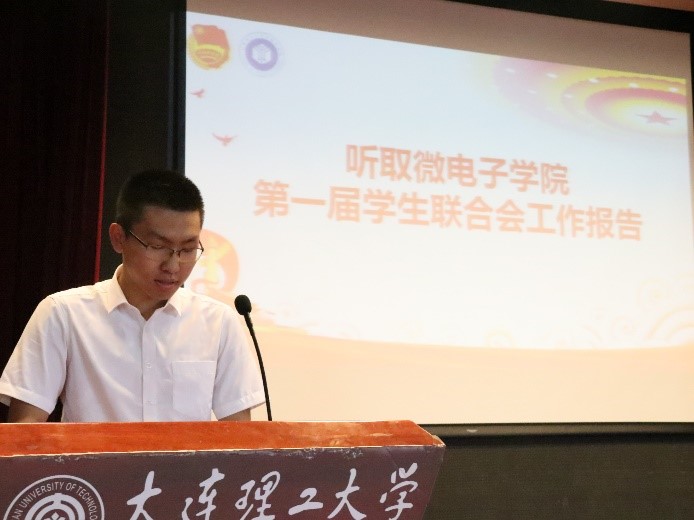 岳老师讲话结束后,微电子学院第一届学生会主席张爱宾代表微电子学院第一届学生会作工作报告。报告回顾了微电子学院学生会过去的工作,自微电子学院成立以来,在校团委和学院团委老师的指导下,微电子学院学生会的工作始终坚持践行社会主义核心价值观,传承大工红色基因。过去一年里微电子学院学生会学习贯彻党的十九大精神,深入学习贯彻习近平总书记系列重要讲话精神,围绕学校的中心工作和校团委的工作部署,在建设校园文化、弘扬体育精神、开拓科创平台、维护学生权益、服务广大学生等方面取得了卓越成绩。报告同时也对未来一年工作进行了展望,对未来工作重点和发展方向做了全面而系统的规划。