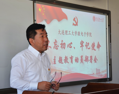 按照学校党委主题教育工作部署,报请学校“不忘初心、牢记使命”主题教育领导小组办公室备案同意,9月18日下午,微电子学院党总支“不忘初心、牢记使命”主题教育动员部署会在研教楼512教室召开,校长助理、开发区校区党工委书记、管委会主任罗钟铉出席并讲话,学院党总支书记付冬娟传达了学校主题教育大会精神并作动员讲话,副院长梁红伟主持会议。学院领导班子、全体师生党员和部分群众代表60余人参加会议。