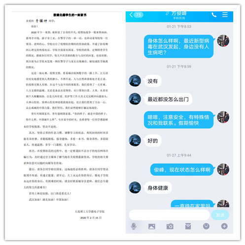 辅导员通过线上春雨谈心,关注学生的思想动态。《致湖北籍学生的一封家书》,表达了学院对湖北籍学生的关爱。同时,也号召全体学生,调整作息习惯与学习状态,为网上授课做好准备。学院辅导员宣传资助政策,为学生提供心理援助,了解学生网课条件,及时帮助学生解决困难,确保学生全身心投入到学习中。