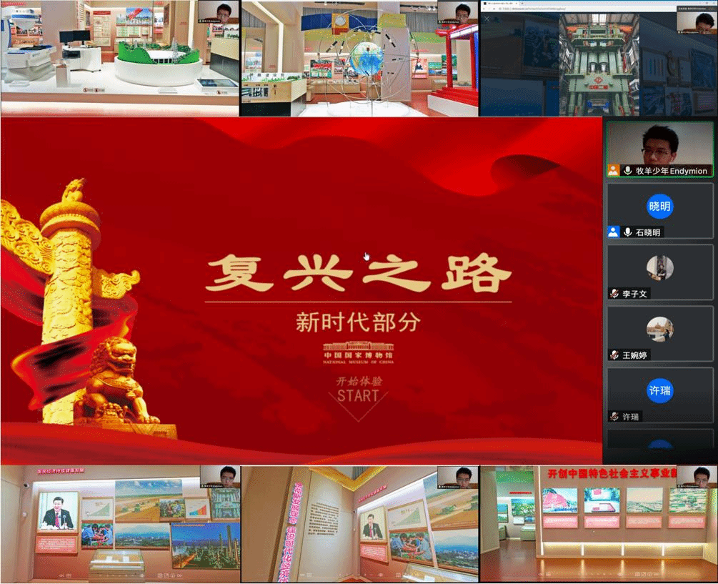 展览包括“序篇:开辟治国理政新境界 开创中国特色社会主义事业新局面”等10个单元,生动形象地展示了中国“从哪里来”,已经“到了哪里”,还将“到哪里去”。结合国家博物馆的网站导引,杨家睿同学为大家做起了“云导游”,通过细致的讲解,给“云游客们”一种身临其境的感觉,仿佛徜徉在展馆当中。