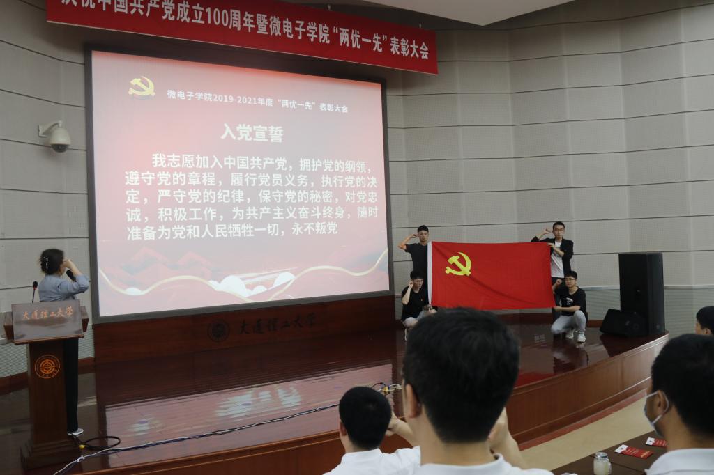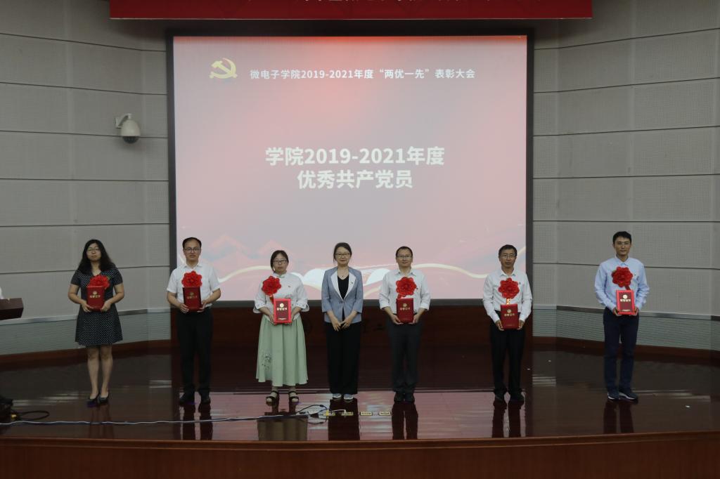 在庆祝中国共产党成立100周年之际,6月29日下午,微电子学院党委在图书馆报告厅隆重召开2019-2021年度“两优一先”表彰大会。学院党政领导班子、党委委员、全体教职工、学生党员及入党积极分子参会,学院党委副书记、副院长李一鸣主持大会。